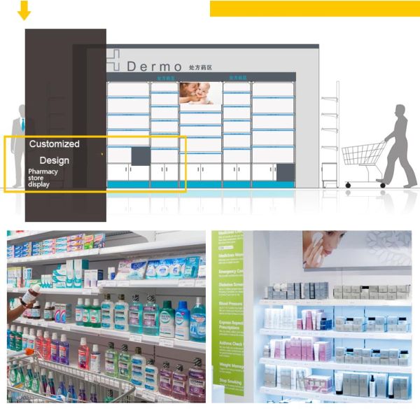 | Product Name | customized metal pharmacy display shelves blue style medicine display rack with double or single side |